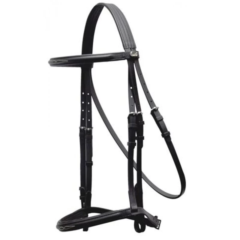 The Tekna Hunter Bridle features lightly padded fancy stitched brow and nose, with hood stud end cheekpieces for a traditional appearance in the hunter rings.