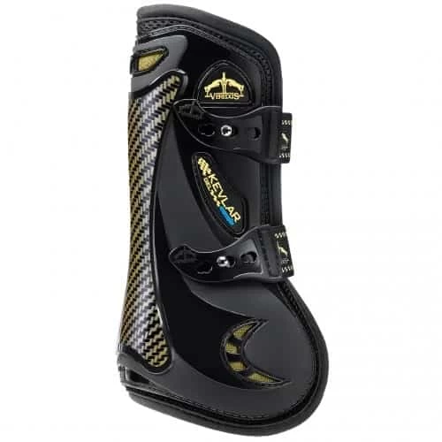 The Veredus Kevlar Gel Vento Open Front Tendon Boots include a Kevlar protective layer. This synthetic material is lightweight, impact resistant, hard wearing and is five times stronger than steel.The horse’s limb is also protected by a nitrexgel shock absorber film, positioned at the back of the boot.