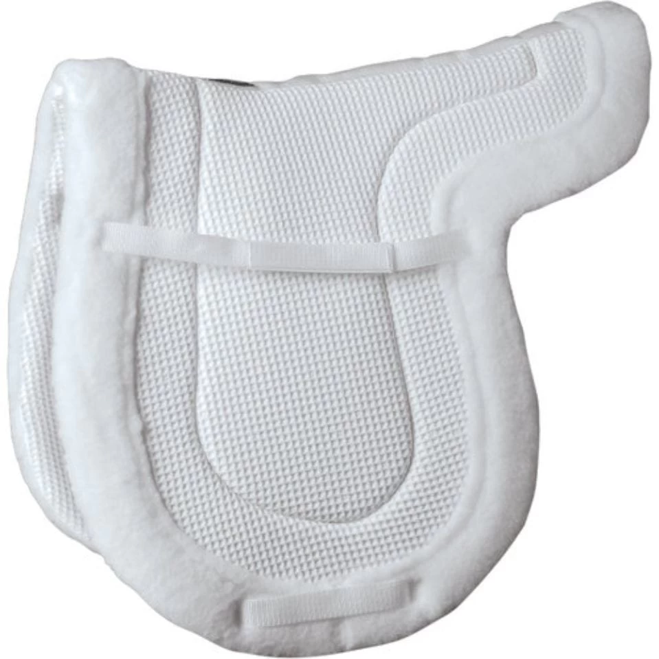 Shaped Waffle Weave Pad. Breathable, airflow waffle weave fabric combined with soft fleece, and shaped to the contours of your saddle. A classic look appropriate for showing and schooling. A super-dense 1/4″ foam interlining absorbs shock for the comfort of both you and your horse.